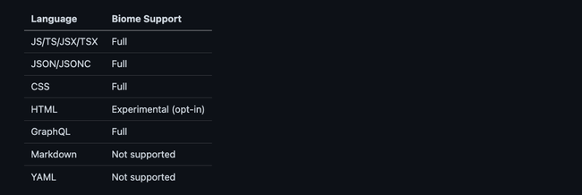 If Prettier is used for Markdown or YAML files, Biome can't replace it for those.